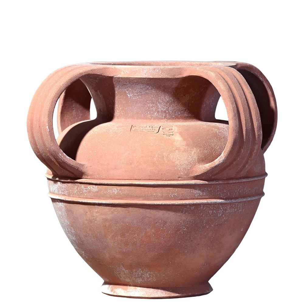 Gefertigt aus hochwertiger Terracotta, überzeugt die Amphore durch ihre warme, natürliche Farbgebung und ihre feine Oberflächenstruktur. Das Material sorgt nicht nur für eine authentische Optik, sondern auch für Langlebigkeit und Witterungsbeständigkeit. Dank ihrer Robustheit ist die Amphore frostsicher bis -25°C und somit ideal für den ganzjährigen Einsatz im Freien geeignet.