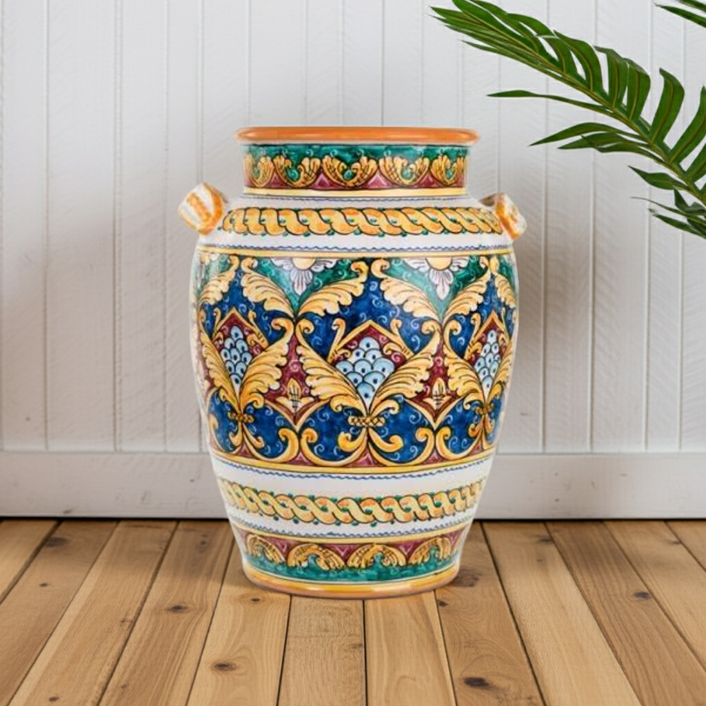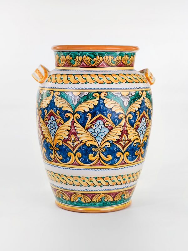 Ein bunter sizilianischer Schirmständer als Eyecatcher für Ihren Eingangsbereich.Das Objekt hat eine klassische Form ohne Henkel und ist aus Keramik gefertigt.