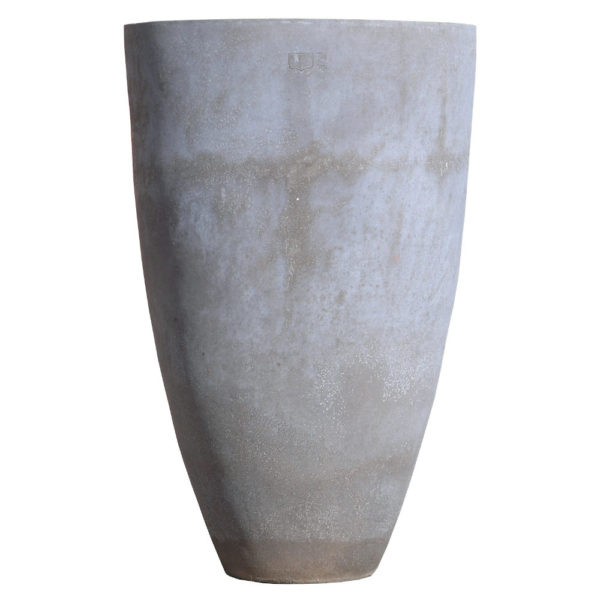 Dieser moderne graue Terracotta Blumentopf ist in zwei Größen erhältlich.