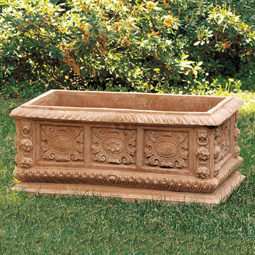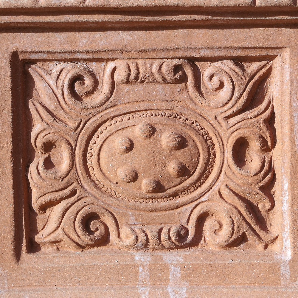 Massiver und mit Mediciwappen und Dekor reich verzierter Terracottakasten aus Impruneta.
