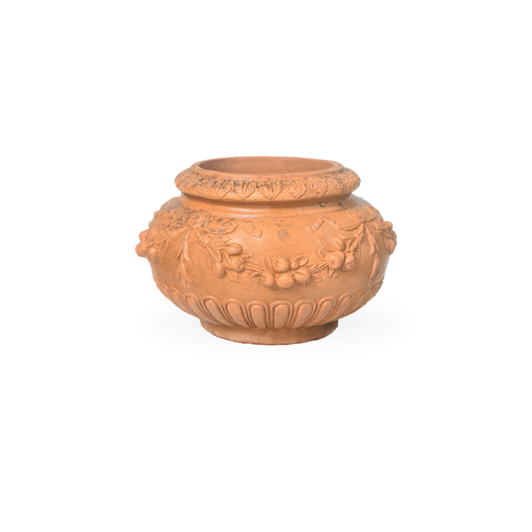 Klassisch verzierter, runder Terracottatopf aus Impruneta.