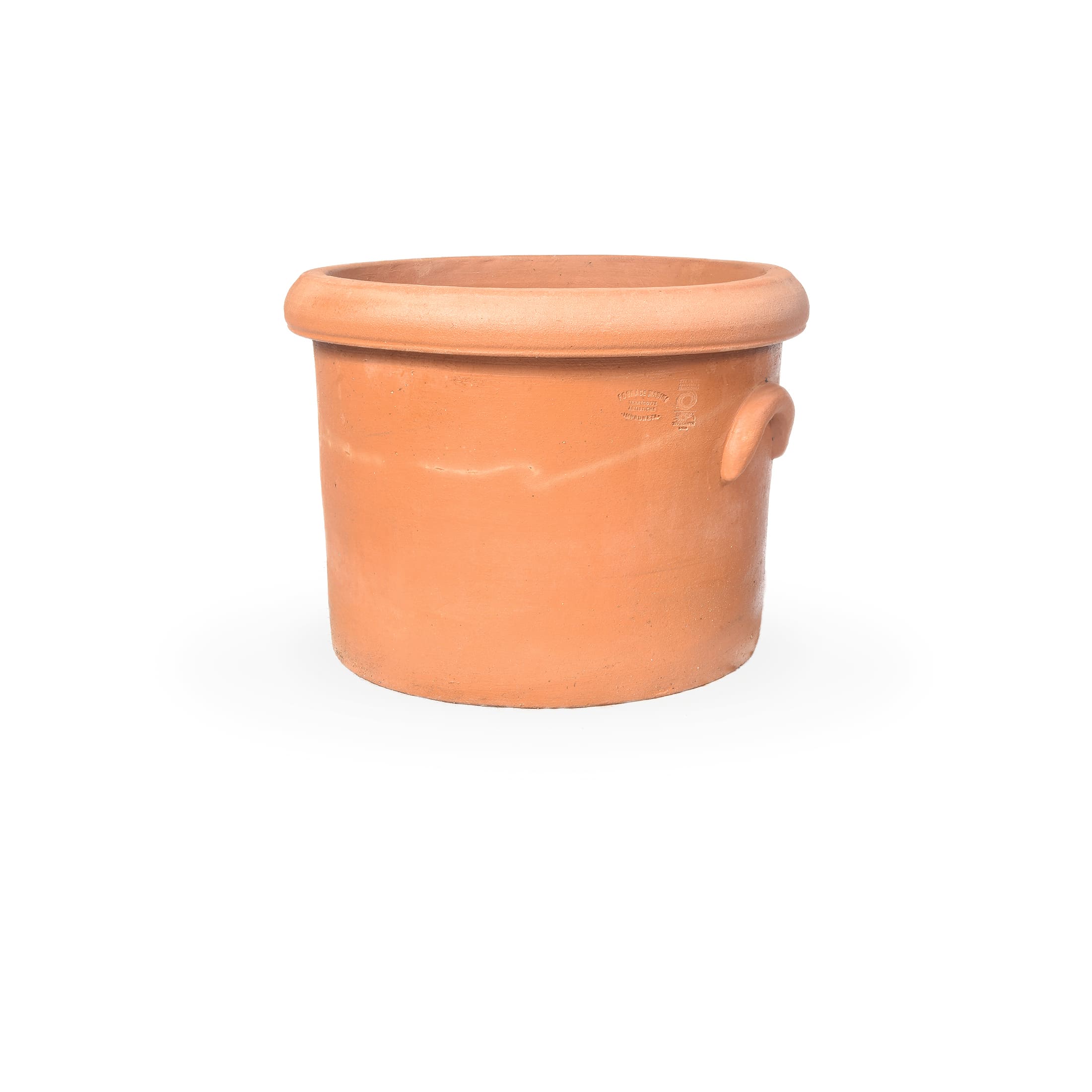 Massiver, runder Terracottacilinder aus Impruneta. Cilindro con manici übersetzt 'mit Griffen' Blumentopf mit Griffdekoration Pflanztopf mit Innenmaßen.