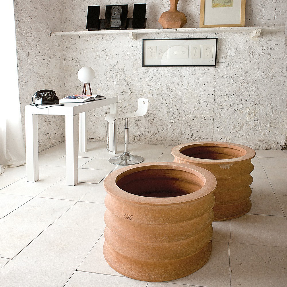 Moderner, kannellierter Terracottacilinder aus Impruneta.