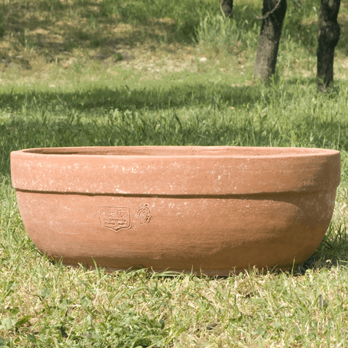 Klassische, ovale Terracotta Schale aus Impruneta. Handgemachte Pflanzschale aus Original Impruneta-Erde Frostsicher bis -30°C Terracottatopf aus Impruneta Blumentopf Pflanztopf mit Außenmaßen Diese Schale ist in einer Grösse erhältlich Breite 58cm, Höhe 45cm, Tiefe 22cm