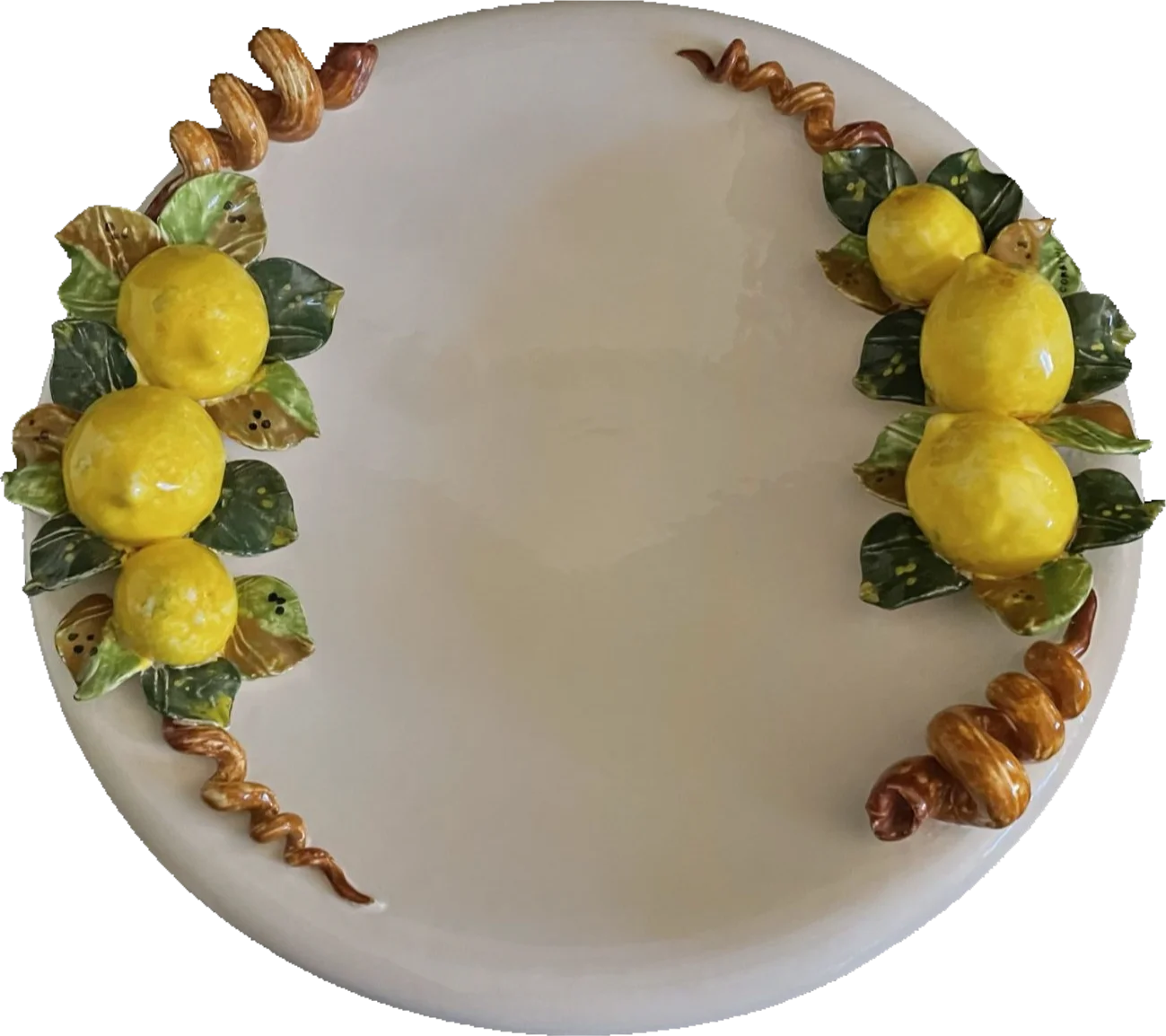 Detailreich gearbeitete Zitronen und Blätter aus Keramik