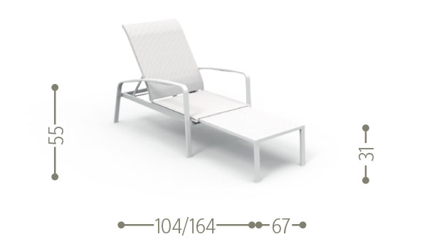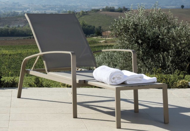 Leichter, eleganter und komfortabler Liegestuhl aus Aluminium und wetterfester Textilbespannung.