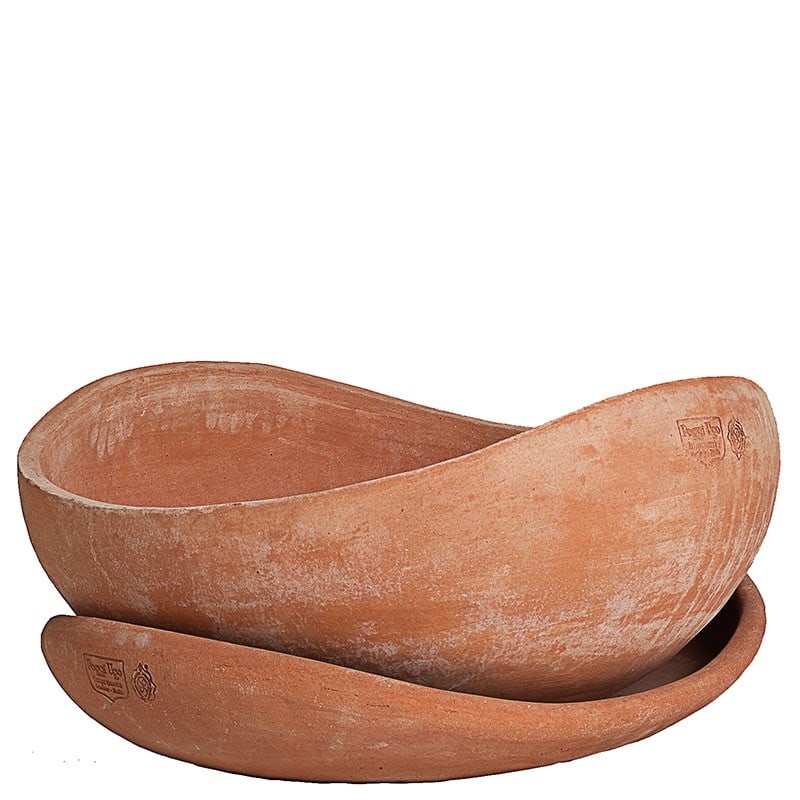Besonders charakteristisch ist die moderne Kombination zweier Designschalen, die dem Blumentopf eine außergewöhnliche, architektonische Note verleiht. Der handgefertigte Terracottatopf wird aus hochwertiger Impruneta-Erde hergestellt, die für ihre Langlebigkeit, Farbintensität und Frostbeständigkeit bekannt ist.
