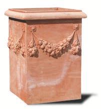 Der hohe und massive quadratische Blumenkasten aus handgearbeiteter Impruneta Terracotta verkörpert eine imposante Eleganz mit einer edlen Ranke als Verzierung. Seine stattliche Höhe und solide Struktur bieten ausreichend Platz für tiefe Wurzeln und eignen sich besonders gut für Pflanzen wie Rosen, die tiefer wurzeln.Die Verzierung des Kastens mit einer kunstvollen Ranke verleiht ihm eine erhabene Schönheit. Die Rankenmuster sind fein gearbeitet und kunstvoll in die Oberfläche des Blumenkastens eingearbeitet. Diese Verzierung verleiht dem Kasten einen Hauch von Raffinesse und ästhetischer Finesse, ohne seine massive Ausstrahlung zu beeinträchtigen. Hergestellt aus Impruneta Terracotta, das für seine Langlebigkeit und Frostbeständigkeit bekannt ist, ist dieser Blumenkasten sowohl robust als auch beständig gegen die Elemente. Diese Eigenschaften machen ihn zu einer ausgezeichneten Wahl für den Außenbereich und ermöglichen es, dass Pflanzen, insbesondere Tiefwurzler wie Rosen, optimal gedeihen können. Der hohe, massive quadratische Blumenkasten mit der edlen Rankenverzierung ist ein beeindruckendes Stück für Liebhaber von Gartenkunst und bietet nicht nur eine imposante Präsentation von Pflanzen, sondern auch eine ästhetisch ansprechende Ergänzung für den Außenbereich.