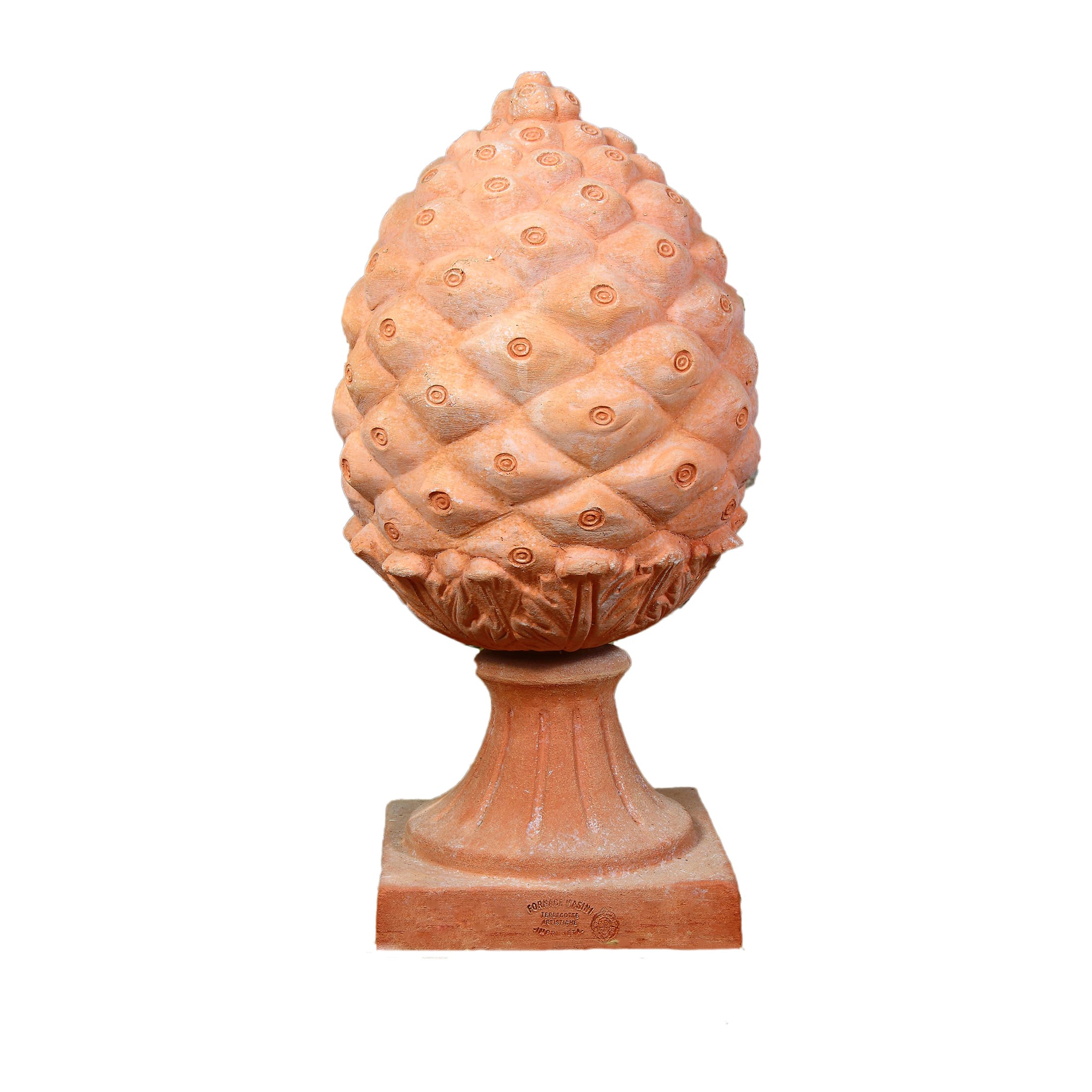 Dekorativer Pinienzapfen aus 2 Teilen bestehend aus original Impruneta Terracotta Accessoire für den Garten Terracottaobjekt aus Impruneta Diese Gartendekoration ist einer Größe erhältlich Frostsicher bis -30°C Basis 23x23cm, Höhe 60cm