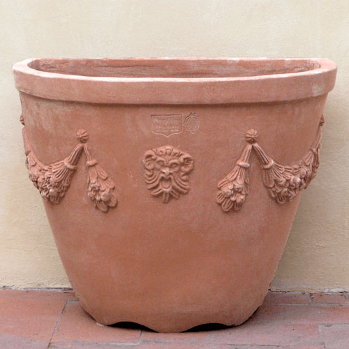 Klassischer, eleganter und leicht verzierter Wandtopf aus Impruneta