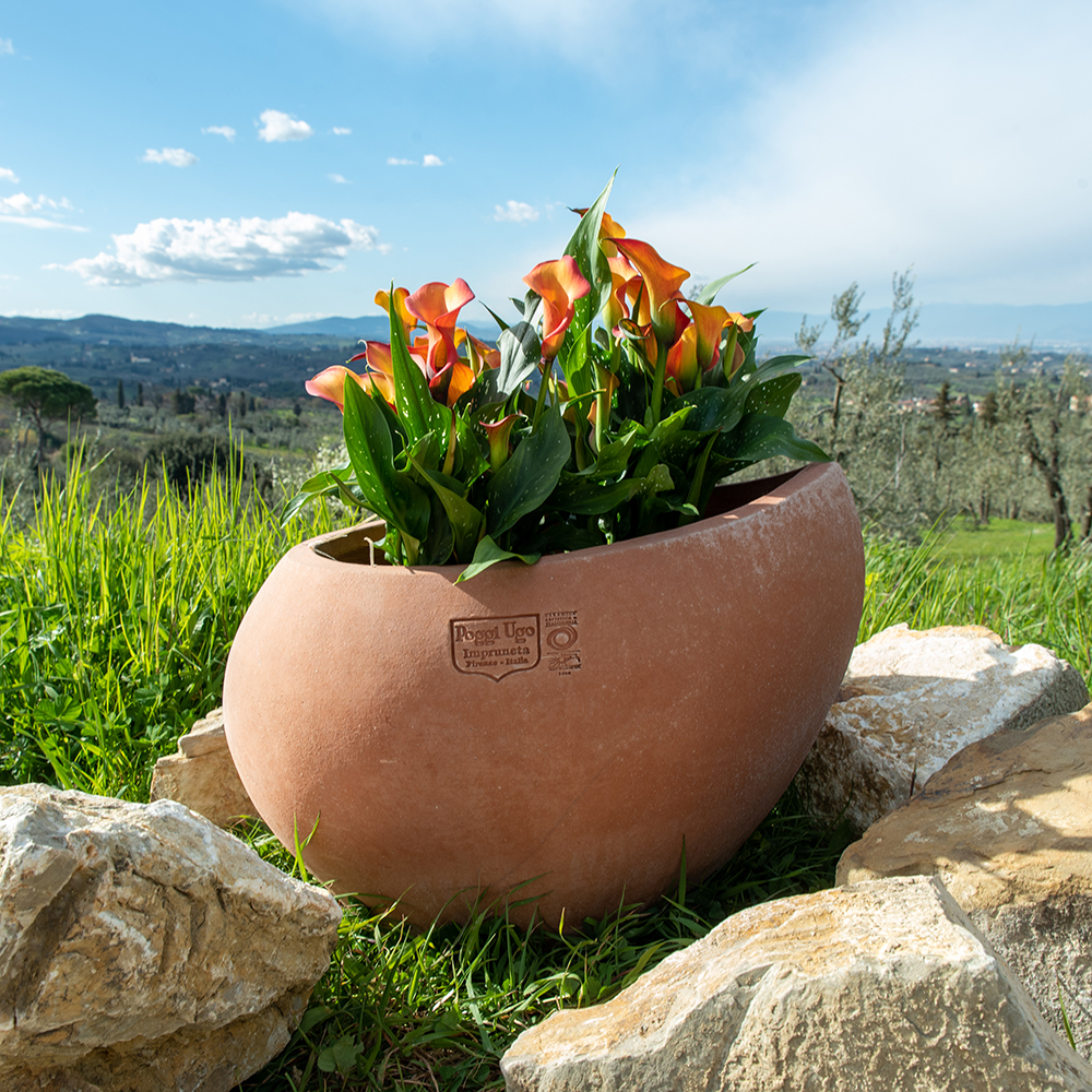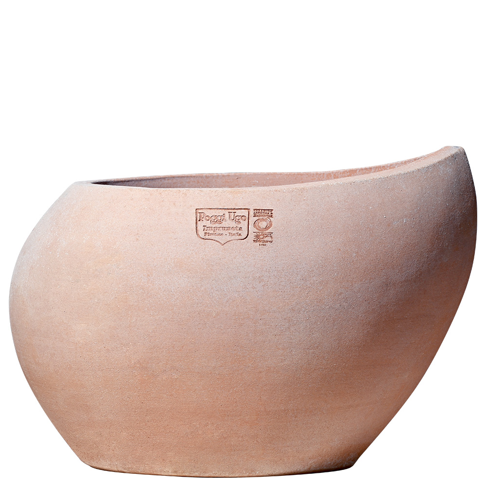 Moderner, ovaler und asymetrischer Terracottatopf aus Impruneta.