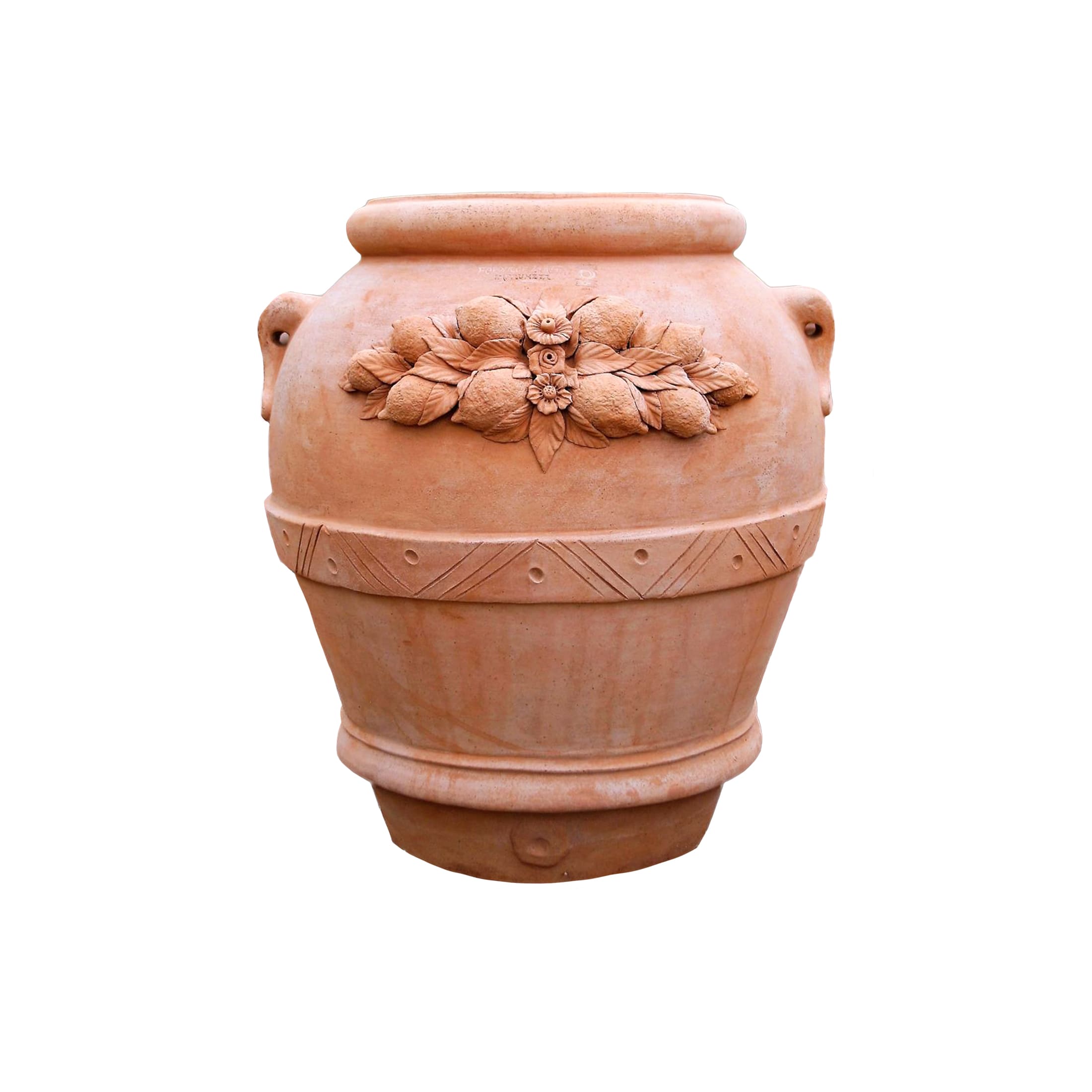 Orcio con limoni Klassischer und massiver Impruneta Ölkrug mit Zitronen dekoriert. Frostfeste Terracotta Dieser Krug ist in einer Grösse verfügbar. Terracottagefäß aus Impruneta Höhe 70 cm
