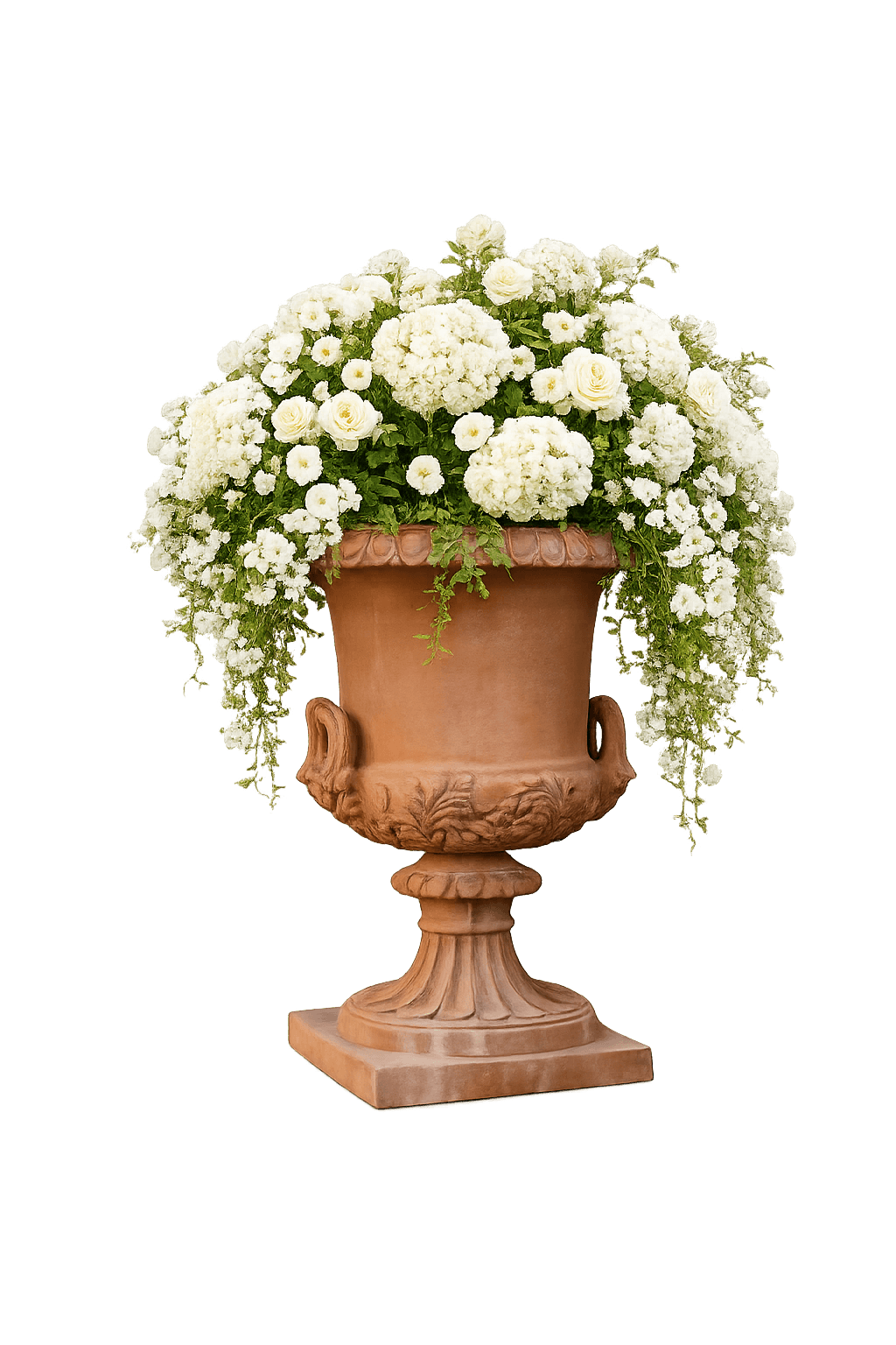 Dieser prachtvolle Terracotta-Pokal aus original Impruneta-Terracotta ist ein Meisterwerk klassischer Formgebung und handwerklicher Präzision. Im Stil des Empire gefertigt, verkörpert er die opulente Eleganz und kultivierte Raffinesse einer Epoche, die antike römische Ästhetik mit französischer Grandezza vereint.