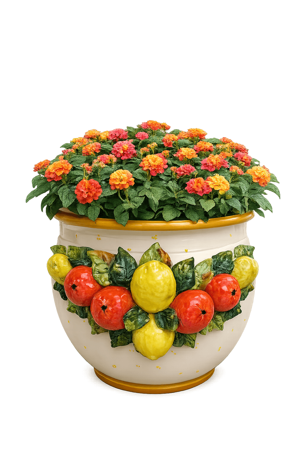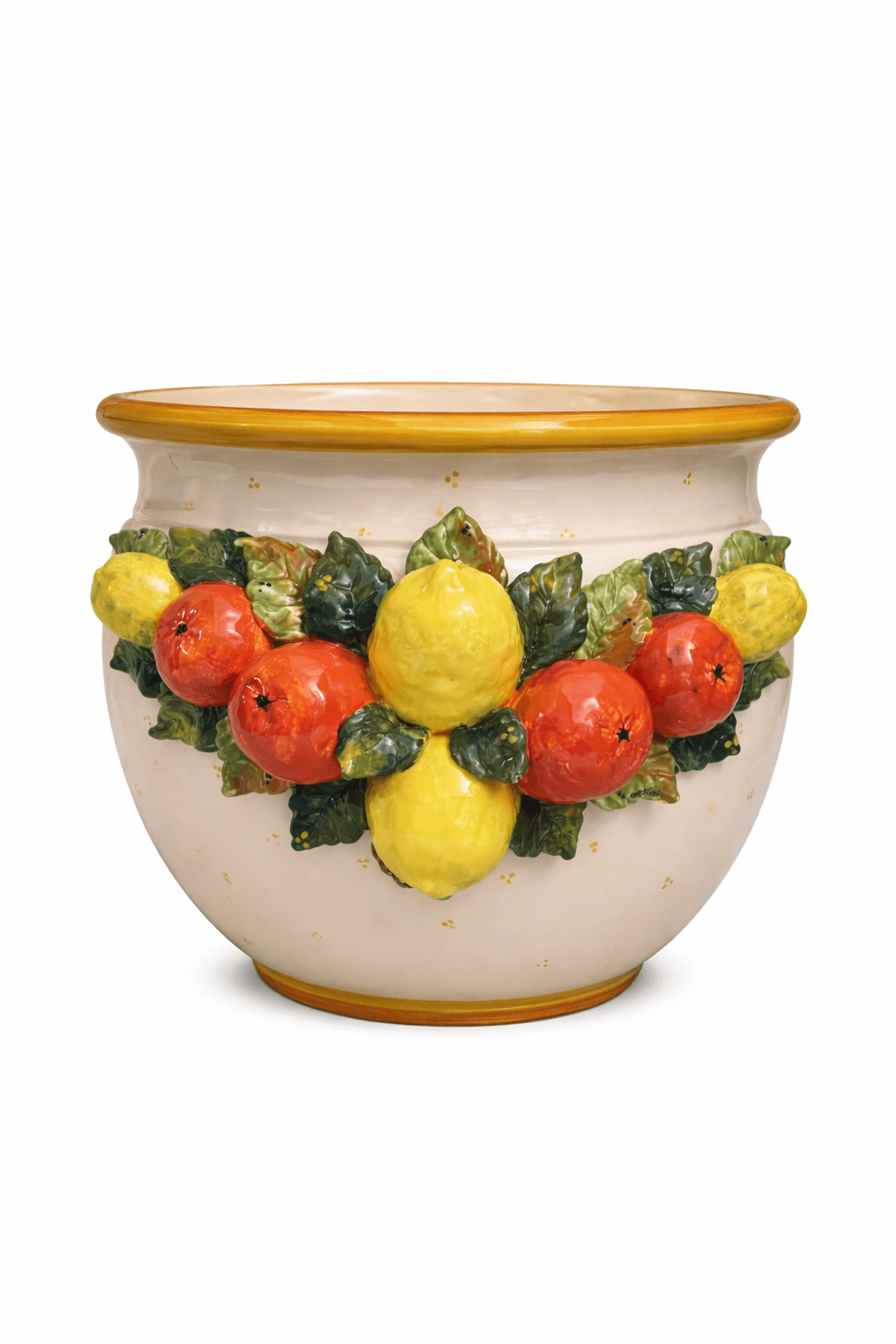 Dieser handgearbeitete Keramik Topf aus der Toscana steht für authentische italienische Handwerkskunst und mediterranes Lebensgefühl. In traditioneller Handarbeit gefertigt, ist jeder Keramiktopf ein Unikat. Die detailreichen Zitronen- und Orangenapplikationen verleihen dem Topf eine frische, sonnige Ausstrahlung und machen ihn zu einem dekorativen Blickfang. Die hochwertige Keramik überzeugt durch Stabilität und Langlebigkeit und eignet sich ideal als Pflanztopf, Übertopf oder stilvolles Wohnaccessoire für Innen- und Außenbereiche. Perfekt für alle, die mediterranes Design, italienische Keramik und handgearbeitete Einzelstücke schätzen.