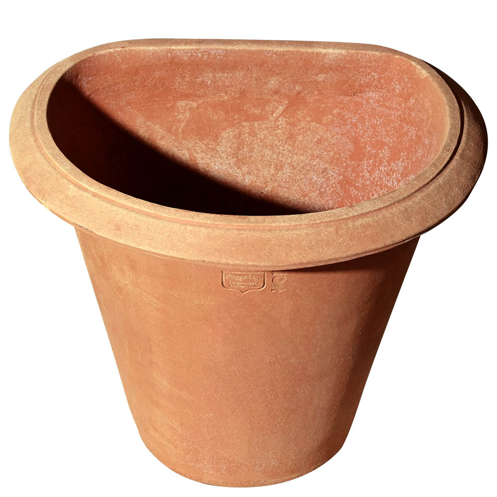 Mit ihrer harmonischen, leicht nach unten zulaufenden Form fügt sich die Vaso Pejrone a parete perfekt an Gartenmauern, Hauswände oder Terrassen. Die abgeflachte Rückseite ermöglicht eine stabile, platzsparende Wandmontage, während das Gefäß dennoch ausreichend Tiefe und Volumen bietet, um den Wurzeln von Rosen und anderen Pflanzen optimale Wachstumsbedingungen zu gewährleisten.
