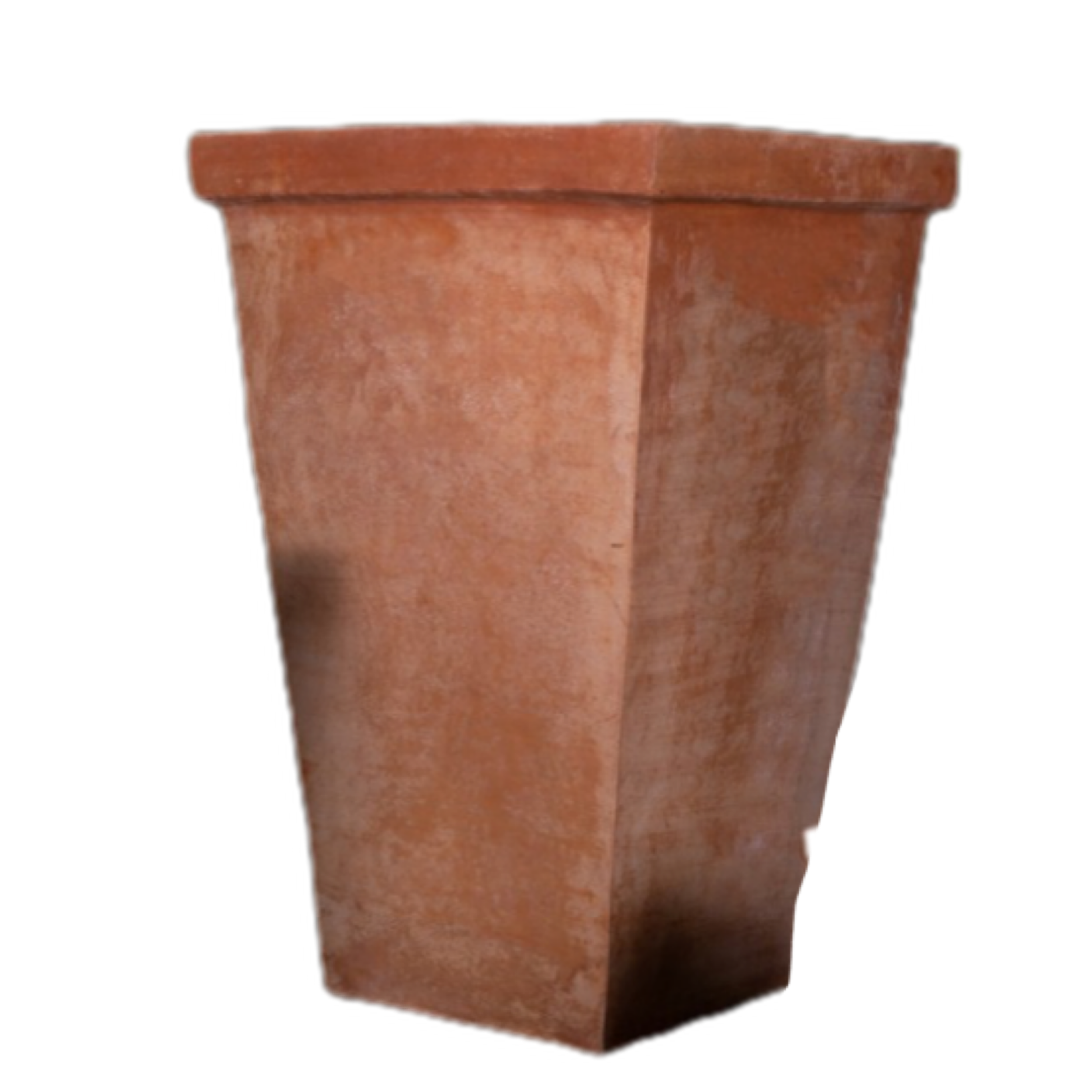 Der Blumenkasten hat eine elegante, moderne Form, die sich von einer breiteren Basis zu einem schlankeren, konisch zulaufenden oberen Teil verjüngt. Die Linien sind sauber und glatt, verleihen ihm ein zeitgemäßes und schlichtes Aussehen. Oben hat der Blumenkasten einen leicht erhöhten Rand, der ihm eine dezente visuelle Akzentuierung verleiht. Die Oberfläche der Terrakotta ist von höchster Qualität und strahlt eine natürliche Wärme und Schönheit aus. Das impruneta Terrakotta hat eine charakteristische rostrote Farbe, die durch den Brennprozess und die mineralischen Eigenschaften des Tons erzeugt wird. Diese Art von Terrakotta ist besonders robust und frostsicher, was sie ideal für den ganzjährigen Einsatz im Freien macht.