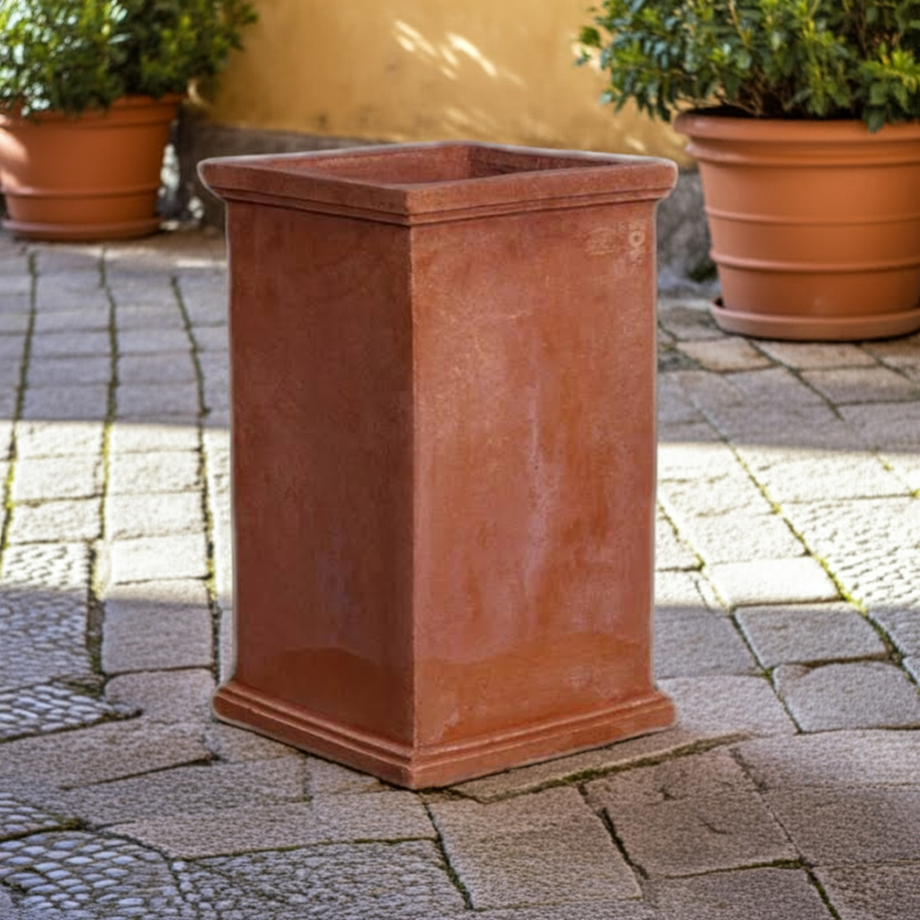 Gefertigt aus der legendären Impruneta-Terracotta, ist dieser Kasten frostsicher, atmungsaktiv und extrem langlebig – ideal für den ganzjährigen Einsatz im Freien. Seine schlichte Eleganz macht ihn zu einem vielseitigen Gestaltungselement: Aufgestellt als Pflanzgefäß setzt er natürliche Akzente, während er umgedreht als klassische Säule genutzt werden kann, um Skulpturen, Gefäße oder andere dekorative Elemente stilvoll in Szene zu setzen.