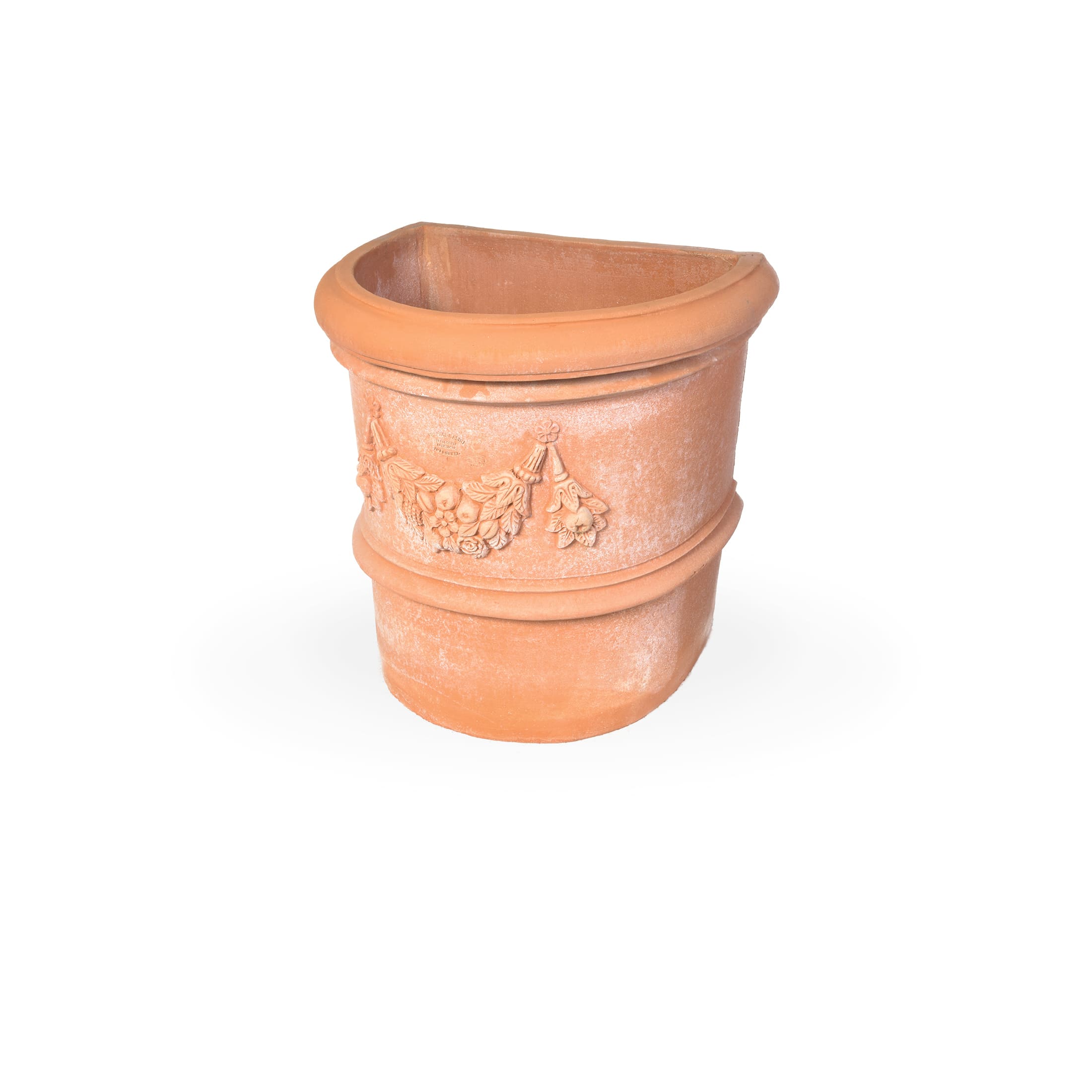 Durch die flache Seite kann dieser Topf direkt an eine Wand gestellt