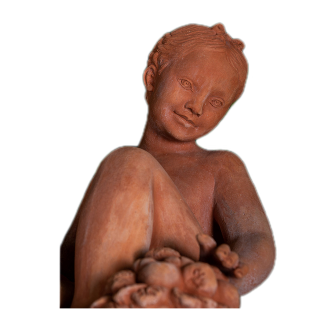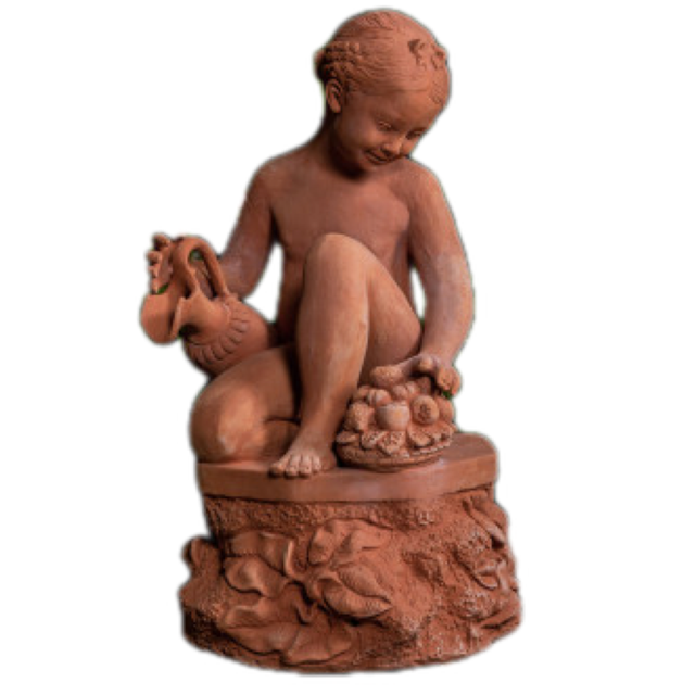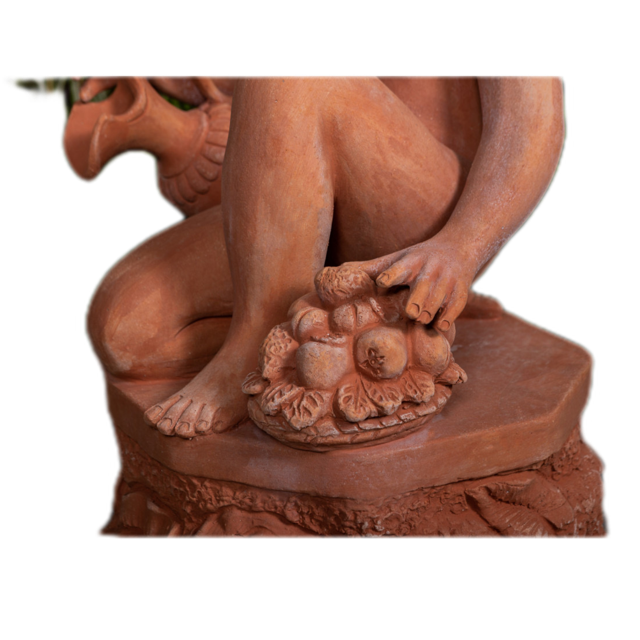 Die Statue ist aus frostbeständiger Impruneta Terrakotta gefertigt, was bedeutet, dass sie gegen extrem kalte Temperaturen beständig ist und sowohl drinnen als auch draußen aufgestellt werden kann. Die Wahl des Materials verleiht der Statue eine warme, erdige Farbe, die zu ihrer natürlichen Schönheit beiträgt.