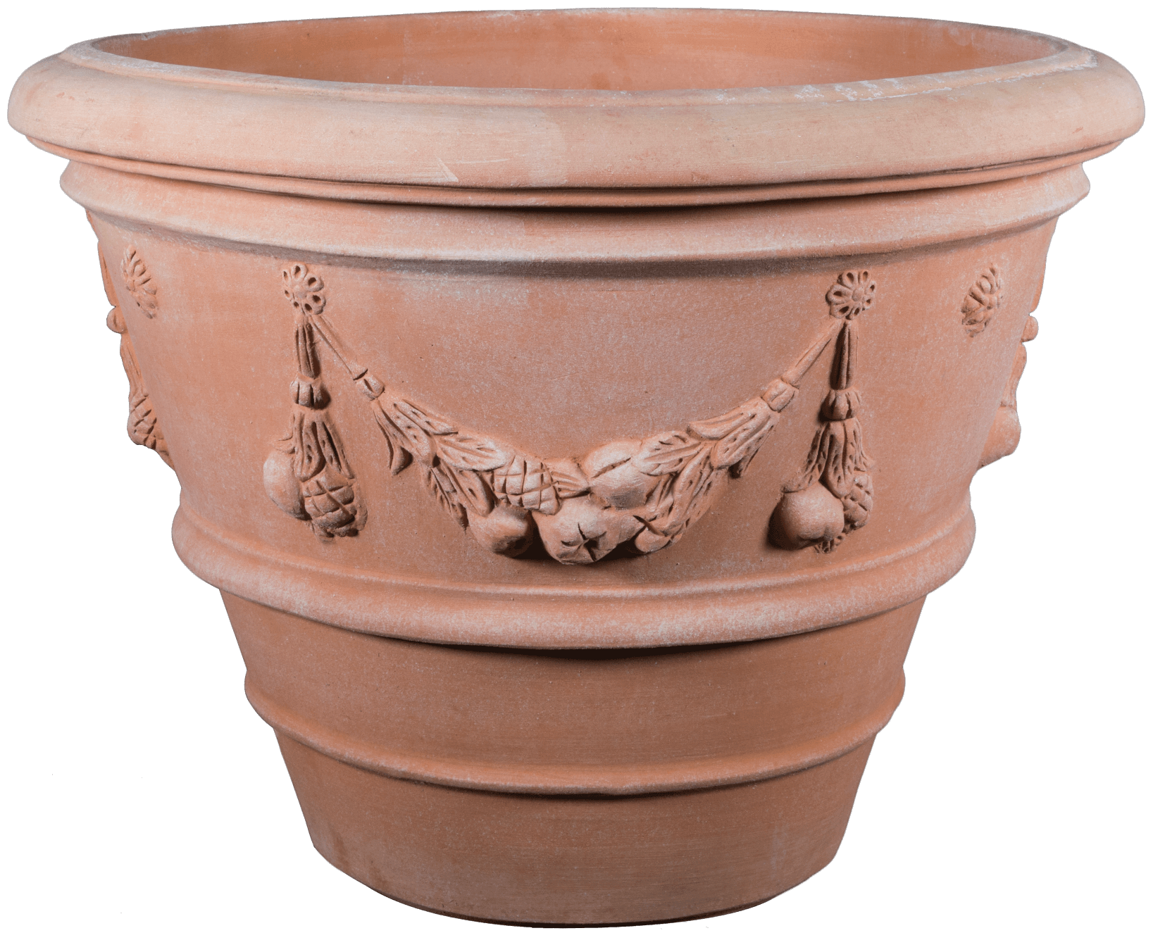 Die Vaso Festonato ist ein echter Klassiker unter den Terracottatöpfen aus Impruneta. Mit seiner runden, sanft konisch zulaufenden Form fügt er sich harmonisch in jede Gartenumgebung ein und ist ideal zum Umpflanzen von Blumen, Sträuchern oder kleinen Bäumen geeignet.