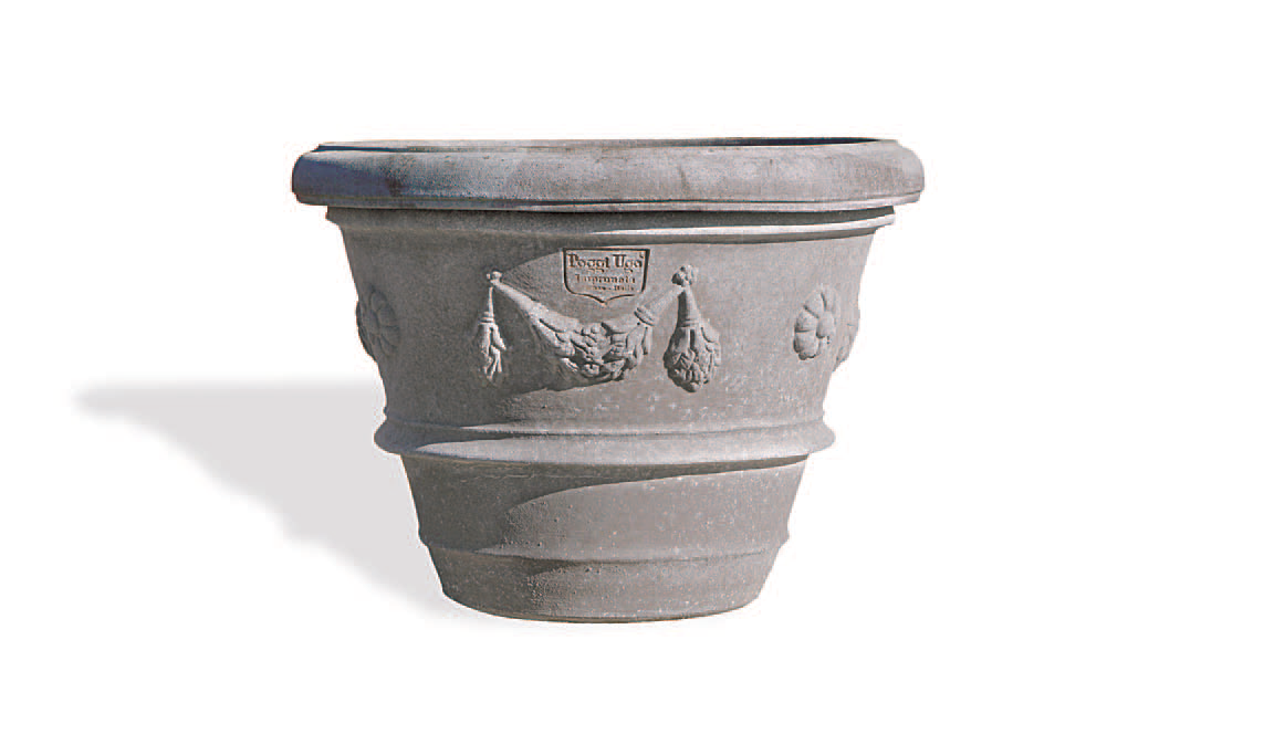 Verzierter grauer Blumentopf von Poggi Ugo. Die Form und das Design machen sie besonders elegant. Sie ist ideal für alle Arten von Pflanzen. Die Reliefdekorationen werden in den traditionellen Proportionen eines Artikels hergestellt, der sich für klassische oder historische Umgebungen eignet. Hergestellt in verschiedenen Größen. Handgefertigt aus Impruneta-Ton, frostbeständig bei über -30°C, ausgezeichnete Haltbarkeit, die Form bleibt im Laufe der Zeit unverändert. Die Terrakotta garantiert eine gute Atmungsaktivität und Wärmedämmung und garantiert somit eine ausgezeichnete Gesundheit der Wurzeln und der Pflanzen selbst. Im Laufe der Zeit erhält es ein gutes Oberflächenaussehen.