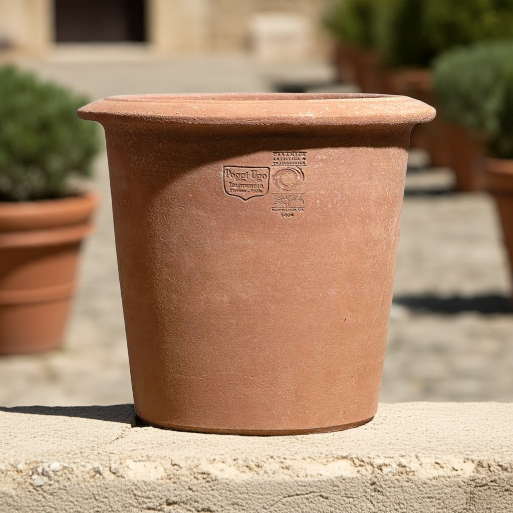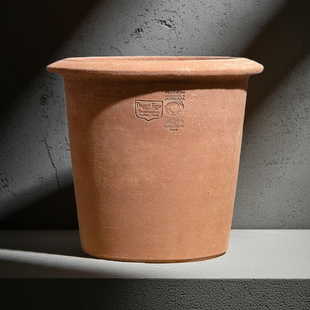 Insgesamt ist dieser gerade und hohe Terracottatopf eine praktische und unaufdringliche Wahl für diejenigen, die kleine Pflanzen pflegen möchten. Seine Schlichtheit und Funktionalität machen ihn zu einer zeitlosen Ergänzung für jeden Raum oder Garten, ohne von der Schönheit der Pflanze abzulenken.