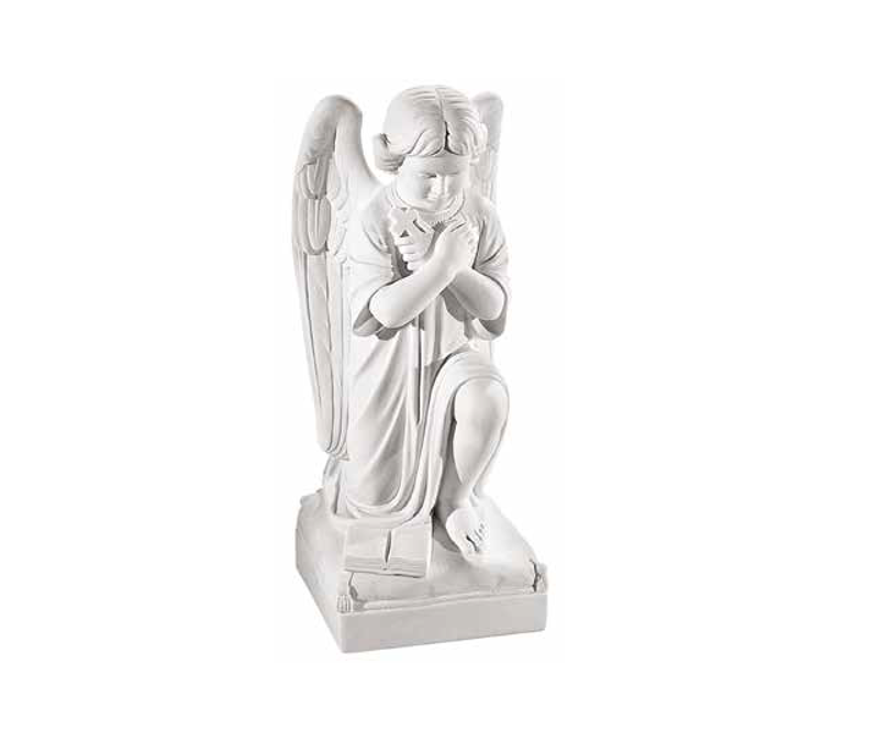 Der Marmor-Engel, der die Form eines knienden Kindes annimmt, ist eine ergreifende Darstellung der Andacht und Trauer. Hergestellt aus Carrara Marmor Gemisch, strahlt die Skulptur eine zeitlose Schönheit aus. Das Kind-Engel kniet in einer Haltung der Demut und Besinnung, wobei es die Hände über der Brust gekreuzt hält. Zwischen den Händen trägt es ein Kreuz, das als Symbol für Glaube und Erlösung dient. Der Ausdruck auf dem Gesicht des Engels ist von Ernsthaftigkeit und Hingabe geprägt, während seine Augen vielleicht in einem stillen Gebet verharren. Die feinen Details der Skulptur, vom sanften Faltenwurf des Gewandes bis hin zur realistischen Darstellung des kindlichen Gesichts, verleihen dem Engel eine berührende Lebendigkeit. Trotz seiner Jugendlichkeit trägt der Engel die Last der Trauer und des Verlustes auf seinen Schultern, was ihn zu einem symbolischen Ausdruck des menschlichen Schmerzes macht. In seiner Gesamtheit strahlt der Marmor-Engel eine Aura der Erhabenheit und Ehrfurcht aus, während er die Betrachter dazu einlädt, in sich zu gehen und über die tiefgründigen Themen von Glaube, Hoffnung und Trost nachzudenken.