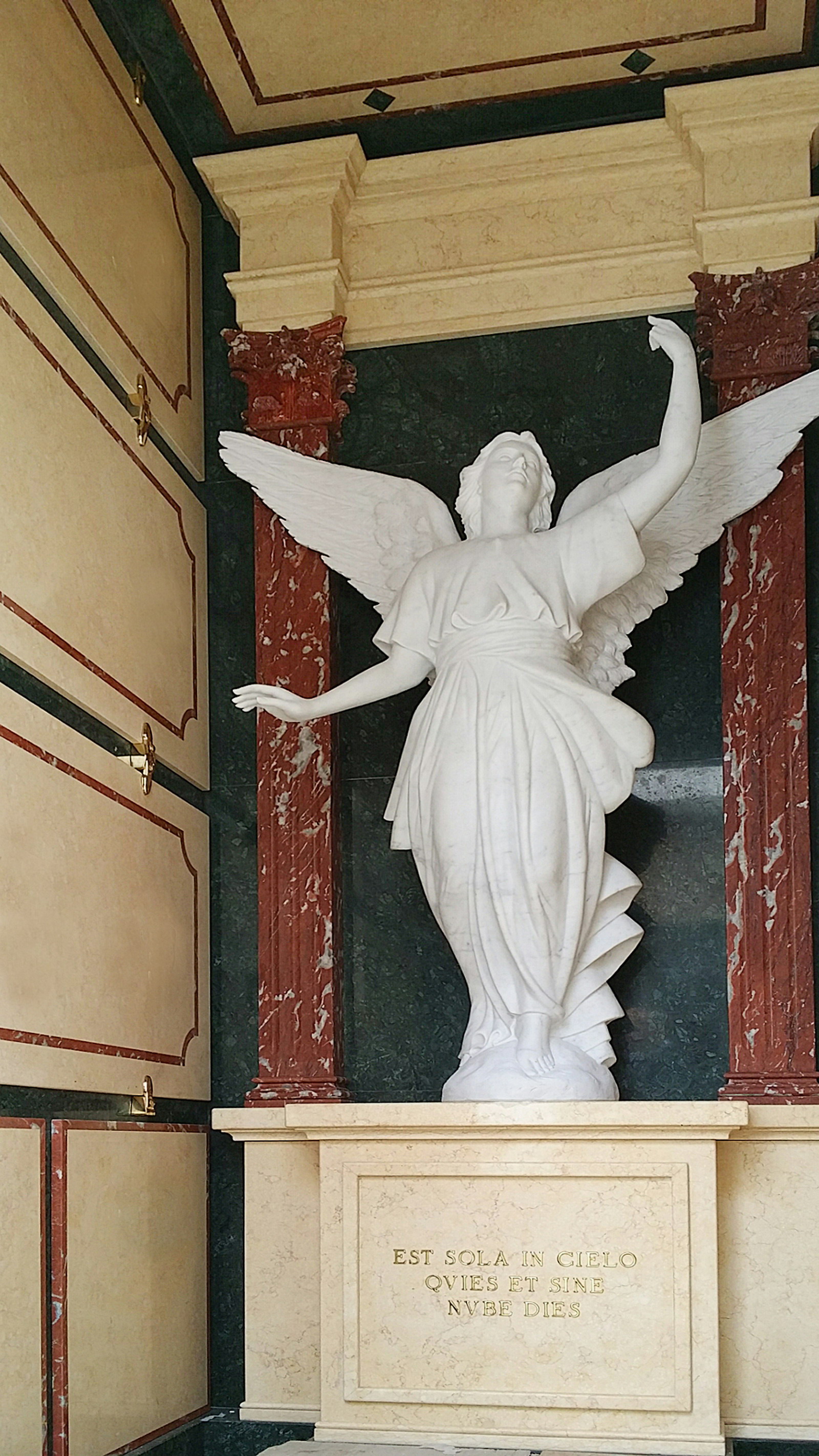 Der Marmorengel aus Carrara Marmor ist eine majestätische Skulptur, die durch ihre erhabene Schönheit und feine Handwerkskunst beeindruckt. Der Engel erhebt sich stolz auf einer stabilen Basis und trägt die Anmut eines himmlischen Boten. Seine Flügel breiten sich weit aus und verleihen ihm eine anmutige Präsenz, während sein Blick sowohl himmelwärts als auch nach unten gerichtet ist. Die glatte Oberfläche des Carrara Marmors verleiht dem Engel eine zeitlose Eleganz. Der Marmor, berühmt für seine helle Farbe und feine Textur, reflektiert das Licht auf eine Weise, die die Details der Skulptur hervorhebt. Die feinen Linien und die sorgfältige Ausarbeitung der Flügel verleihen dem Engel ein Gefühl von Bewegung und Leichtigkeit, als würde er in den Himmel schweben. Die Pose des Engels, der mit einem ausdrucksstarken Blick in die Höhe zeigt, vermittelt eine tiefe spirituelle Verbindung und erweckt den Eindruck, dass er Botschaften zwischen der Erde und dem Himmel überbringt. Die künstlerische Ausgestaltung des Gesichts strahlt Frieden und Erhabenheit aus, während die Details der Locken und des Faltenwurfs der Kleidung die meisterliche Handwerkskunst des Bildhauers unterstreichen. Diese Carrara Marmor-Skulptur ist nicht nur ein Kunstwerk, sondern auch ein Symbol für Spiritualität und Erhabenheit. Ihr Anblick erinnert an die zeitlose Schönheit und den künstlerischen Reichtum, der durch die Verwendung dieses edlen Materials eingefangen wird.