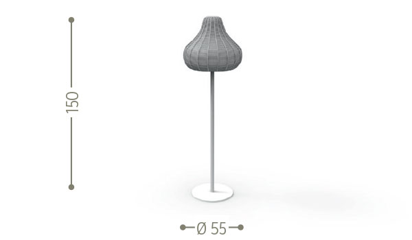 Sie ist modern und als leuchtendes Accessoire auf dem Boden eine perfekte Kombination zu Ihrer Garteneinrichtung. Durch das gebrochene Licht, das durch die Korboptik erzeugt wird, entsteht eine warme Athmosphäre gepaart mit stylischen Accessoires. Das Material, aus dem es besteht, ist ein synthetisches Stoffgeflecht, das in zwei verschiedenen Farben erhältlich ist: Hellgrau und dunkelgrau.