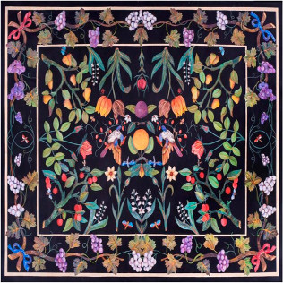 Reich verzierte dekorative Marmorplatte mit verspieltem floralem Motiv. Eingearbeitet in vollendeter Scagliolatechnik st ein meisterhaftes Mosaik mit farbenprächtigen Blumen, Ranken und Trauben. Handgearbeitet von Bianco Bianchi. Edles Dekorstück aus dem traditionellen Florenz. Diese Platte kann als Tischplatte oder als Wanddekor verwendet werden.