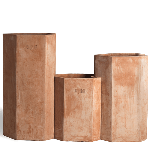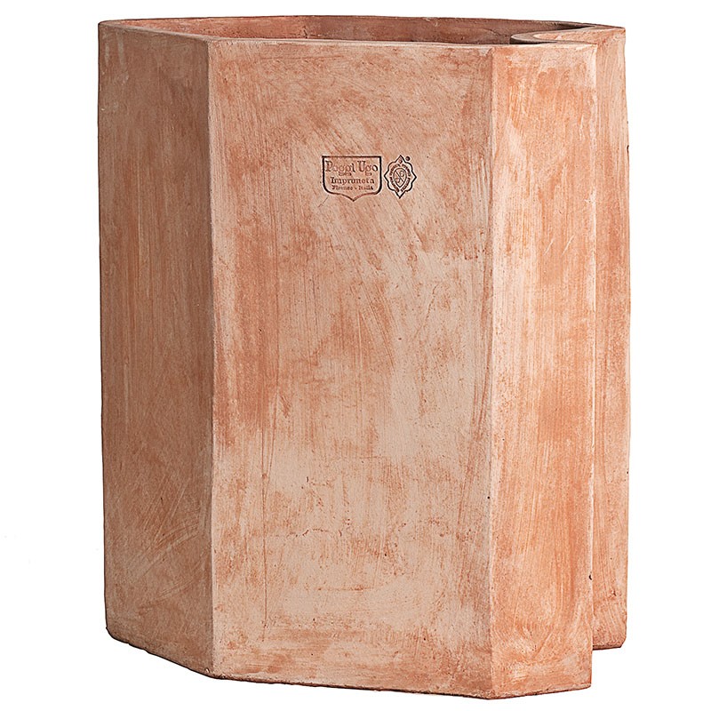 Moderner Terracotta Wandtopf aus Impruneta. Modernes Design unterstützt die klaren Konturen Ihrer Wand. Dieser moderne Terracotta Blumentopf ist in mehreren Größen erhältlich. Handgemachter Terracottatopf aus original Impruneta Erde. Die gute Wasserregulierung der Terracotta und die leichte, stetige Abgabe