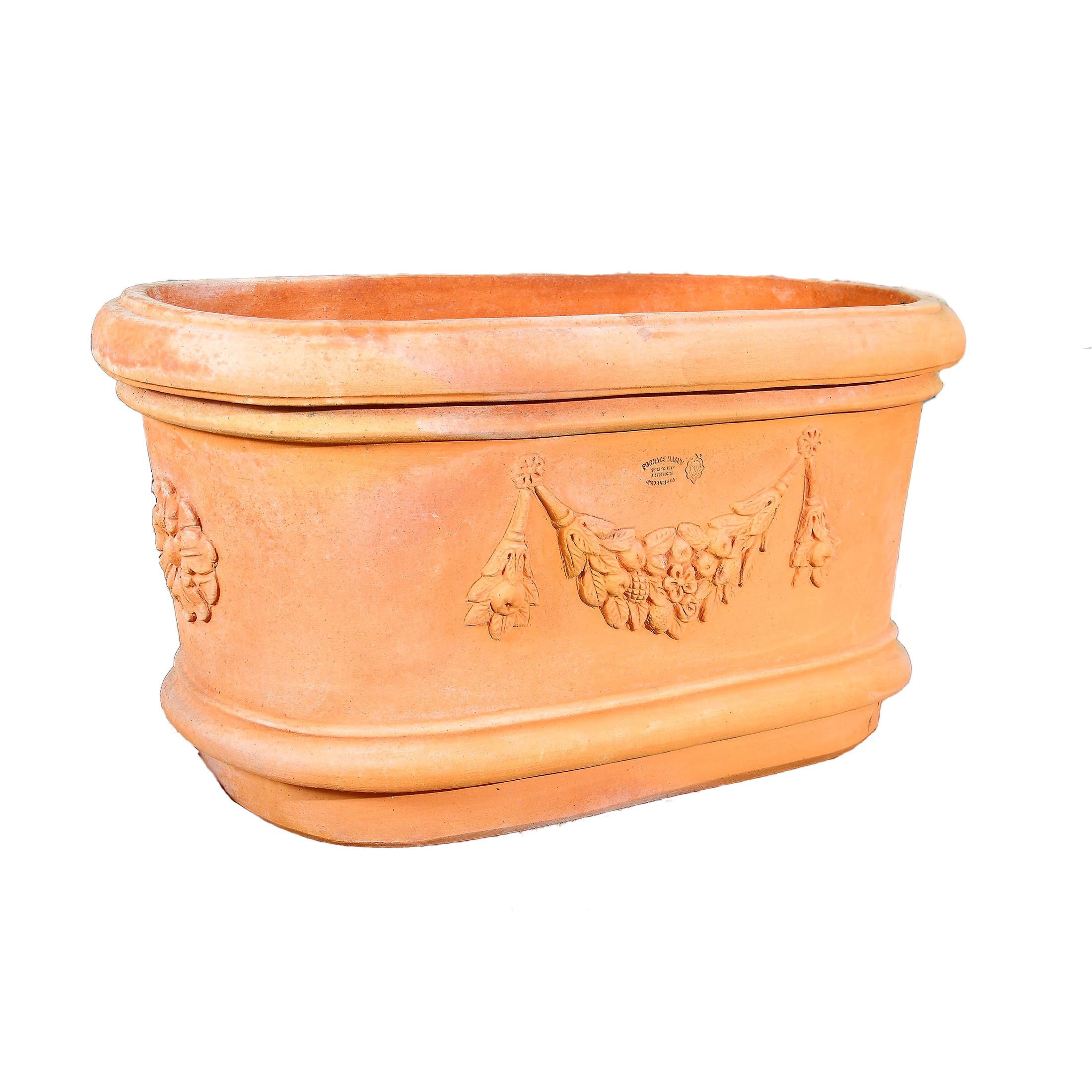 Die große ovale Terracottawanne ist ein beeindruckendes Stück, das die Handwerkskunst und Eleganz von Impruneta-Terrakotta verkörpert. Diese Wanne wurde mit größter Sorgfalt und Liebe zum Detail gefertigt und eignet sich perfekt zum Bepflanzen, um einen Garten, eine Terrasse oder einen anderen Außenbereich zu verschönern.