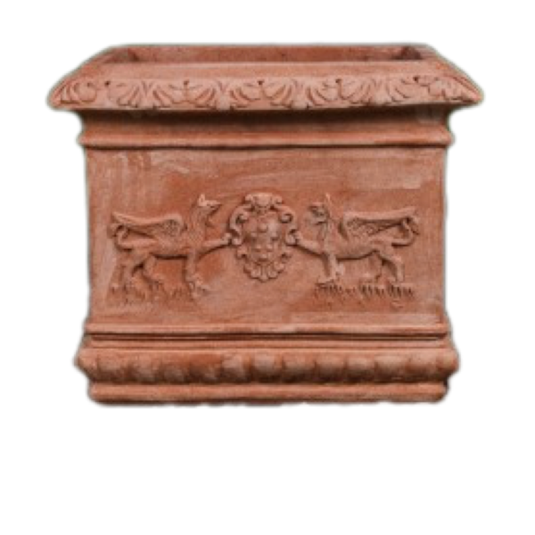 Der Impruneta Terracotta Blumenkasten präsentiert sich als massives und imposantes Pflanzgefäß, das durch seine beeindruckende Größe und aufwendige Verzierungen im barocken Stil besticht. Handgefertigt in der renommierten Region Impruneta in Italien, verkörpert dieser Blumenkasten die höchste handwerkliche Qualität. Das Gefäß ist groß und massiv, was es zu einem eindrucksvollen Mittelpunkt in Gärten, Parks oder großzügigen Außenbereichen macht. Die Impruneta Terracotta, bekannt für ihre Frostbeständigkeit und Haltbarkeit, sorgt dafür, dass der Blumenkasten den Elementen standhält und gleichzeitig eine zeitlose Schönheit ausstrahlt. Die aufwendigen barocken Ornamente, die den Blumenkasten schmücken, verleihen ihm eine königliche und prunkvolle Ausstrahlung. Jedes Detail ist mit größter Sorgfalt gestaltet, angefangen bei kunstvollen Blumenranken bis hin zu filigranen Schnitzereien, die den gesamten Kasten umgeben.Besonders auffällig sind die beiden Greifen, die das Medici Wappen halten. Diese mythologischen Kreaturen, oft als Wächter oder Beschützer dargestellt, tragen zu dem majestätischen Charakter des Blumenkastens bei. Das Medici Wappen, ein Symbol der Renaissance und der kulturellen Blütezeit, fügt dem Gefäß eine historische Tiefe hinzu. Die Kombination aus imposanter Größe, barocken Verzierungen und symbolischen Elementen macht diesen Impruneta Terracotta Blumenkasten zu einem wahrhaft einzigartigen Kunstwerk im Freien. Er verbindet Funktionalität mit ästhetischer Pracht und wird sicherlich zum Blickfang in jedem Garten oder Park.