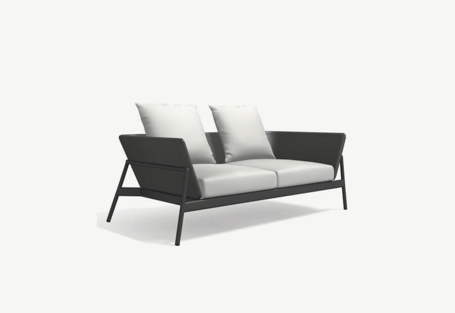 Die Struktur besteht aus pulverbeschichtetem Aluminium, die Kissen sind individuell farblich zu gestalten.