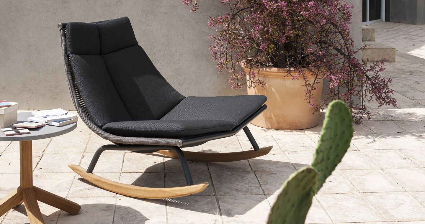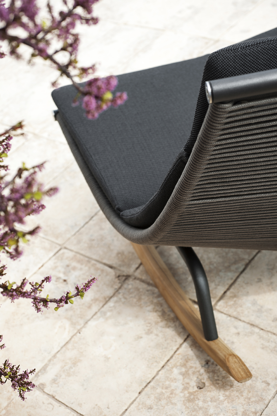 Der LAZE Outdoor Schaukelstuhl ist wie alle Sessel aus dieser Serie als "Sessel zum Faulenzen" gedacht.