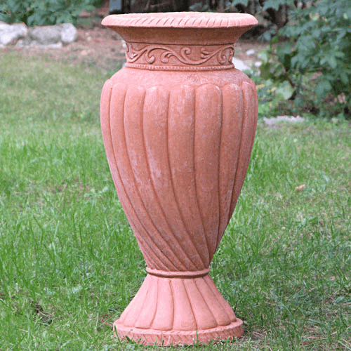 Der elegante und hohe Schirmständer aus Impruneta Terracotta verkörpert Raffinesse und zeitlose Eleganz. Die schmale, hohe Form des Schirmständers verleiht ihm eine grazile Silhouette, während die hochwertige Impruneta Terracotta für Stabilität und Robustheit sorgt. Die Verzierungen des Schirmständers sind besonders bemerkenswert. Ein kunstvolles Volutenmuster schmückt das obere Teil des Ständers. Diese stilisierten spiralförmigen Verzierungen verleihen dem Schirmständer eine klassische und kunstvolle Ästhetik. Die geschwungenen Kannelluren, vertikale Rillen oder Rillen mit wellenförmigen Konturen, betonen die Eleganz und verleihen dem Ständer eine zusätzliche texturierte Dimension. Die Verwendung von Impruneta Terracotta, einem hochwertigen und frostbeständigen Material, unterstreicht nicht nur die traditionelle Handwerkskunst, sondern verleiht dem Schirmständer auch die charakteristische Terrakotta-Farbe und Textur. Diese natürlichen Merkmale tragen zur zeitlosen Schönheit des Ständers bei. Die schmale und hohe Gestaltung des Schirmständers macht ihn besonders geeignet für schlanke Sonnenschirme oder dekorative Schirme in Außenbereichen wie Gärten, Terrassen oder Höfen. Durch seine Verzierungen wird er selbst zu einem dekorativen Element, das Eleganz und Stil in den Raum bringt. Insgesamt repräsentiert der elegante und hohe Schirmständer aus Impruneta Terracotta eine gelungene Verbindung von traditionellem Handwerk und ästhetischer Raffinesse. Er fügt sich harmonisch in verschiedene Umgebungen ein und verleiht ihnen eine Note von zeitloser Schönheit.
