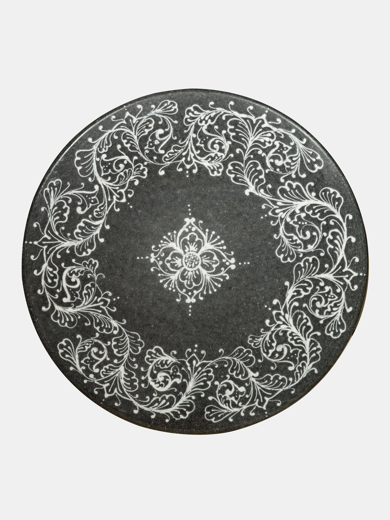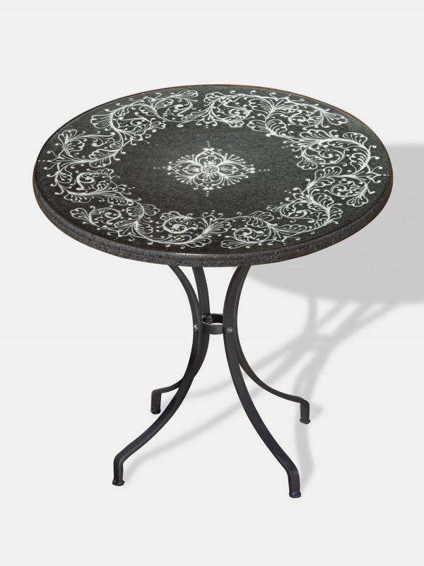 Der Gartentisch aus Lavastein, der aus Italien stammt, ist eine wunderschöne Kombination aus Eleganz und Robustheit. Sein runder Tischplatte aus schwarzem Lavastein ist mit einem feinen weißen Dekor verziert, das eine subtile, aber ansprechende visuelle Note bietet. Das Eisengestell bildet einen stabilen und charmanten Kontrast zur Tischplatte. Die Verwendung von Lavastein verleiht dem Tisch eine natürliche Schönheit und gleichzeitig eine hohe Widerstandsfähigkeit gegenüber den Elementen. Diese Eigenschaft macht ihn ideal für den Einsatz im Freien, da er Witterungseinflüssen standhält. Die Tatsache, dass der Tisch in verschiedenen Größen erhältlich ist, ermöglicht es, den passenden Tisch entsprechend des verfügbaren Platzes und den individuellen Bedürfnissen auszuwählen. Von kleinen gemütlichen Bereichen bis hin zu großzügigen Außenbereichen kann dieser Gartentisch in verschiedenen Umgebungen eine beeindruckende Präsenz haben.