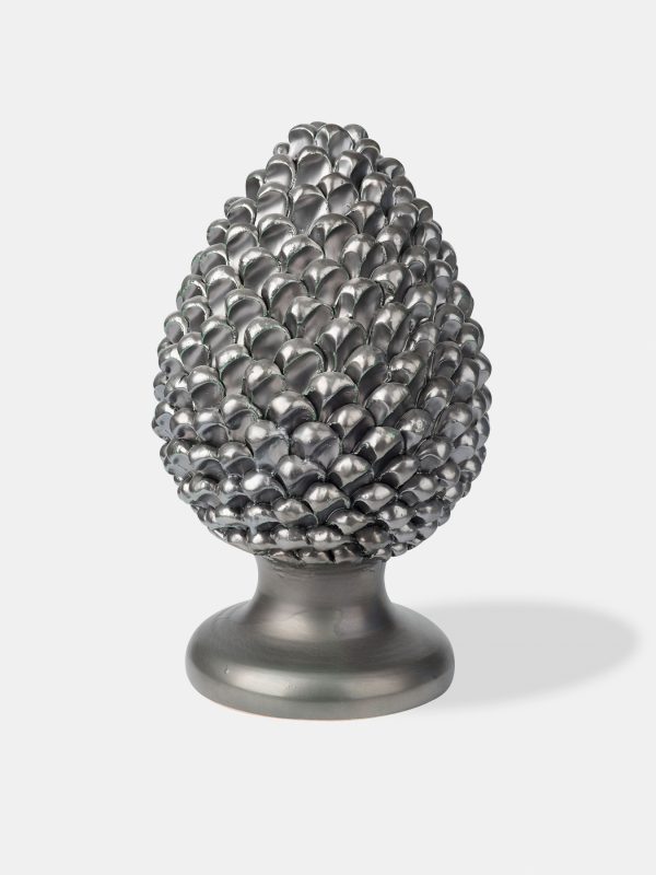 Silberner Pinienzapfen mit verziertem Fuß, handgefertigt aus Sizilien. Handarbeit nach jahrhundertealter Tradition,
