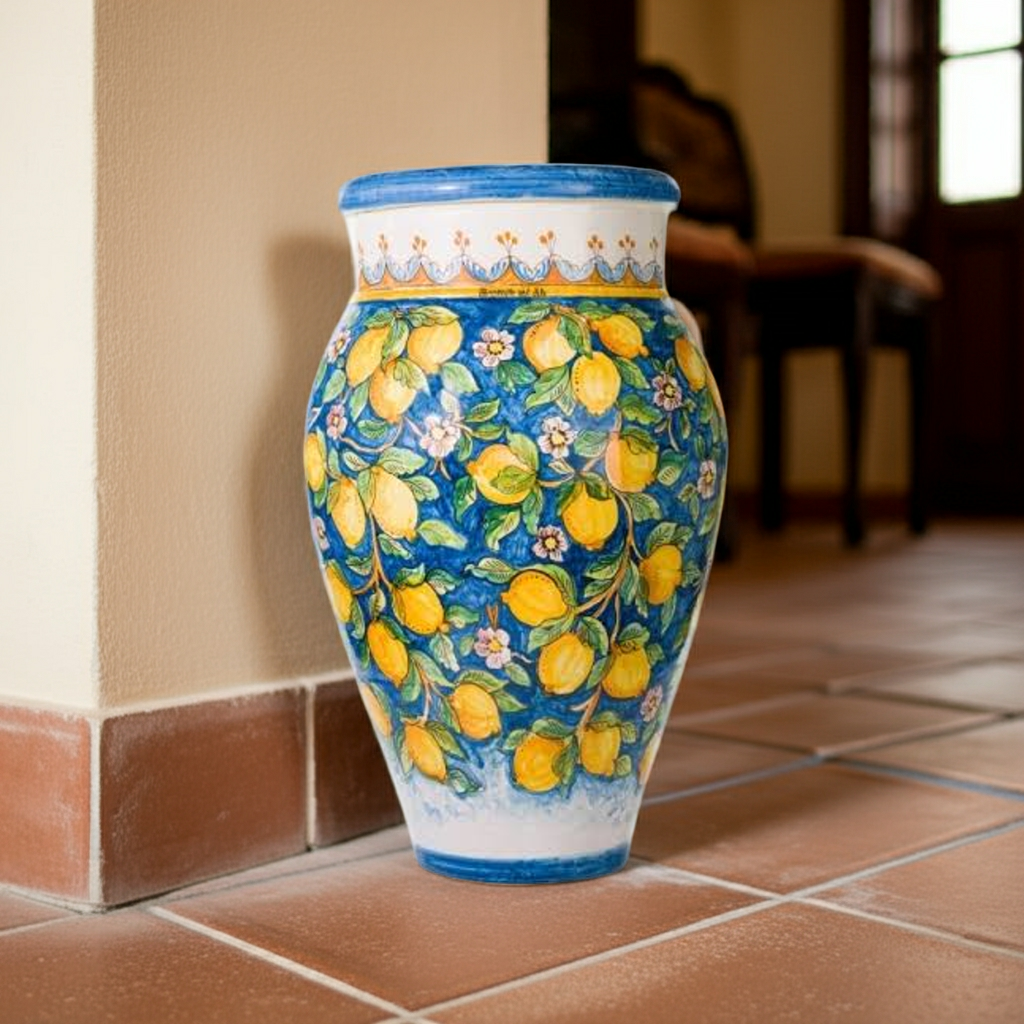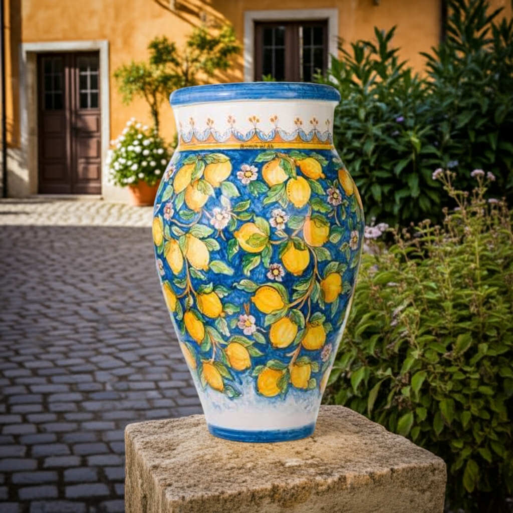 Insgesamt ist der bunte sizilianische Krug mit Zitronen ein herrlicher Blickfang und ein perfektes Accessoire für alle, die ein Stück Italien in ihrem Zuhause oder Garten haben möchten.