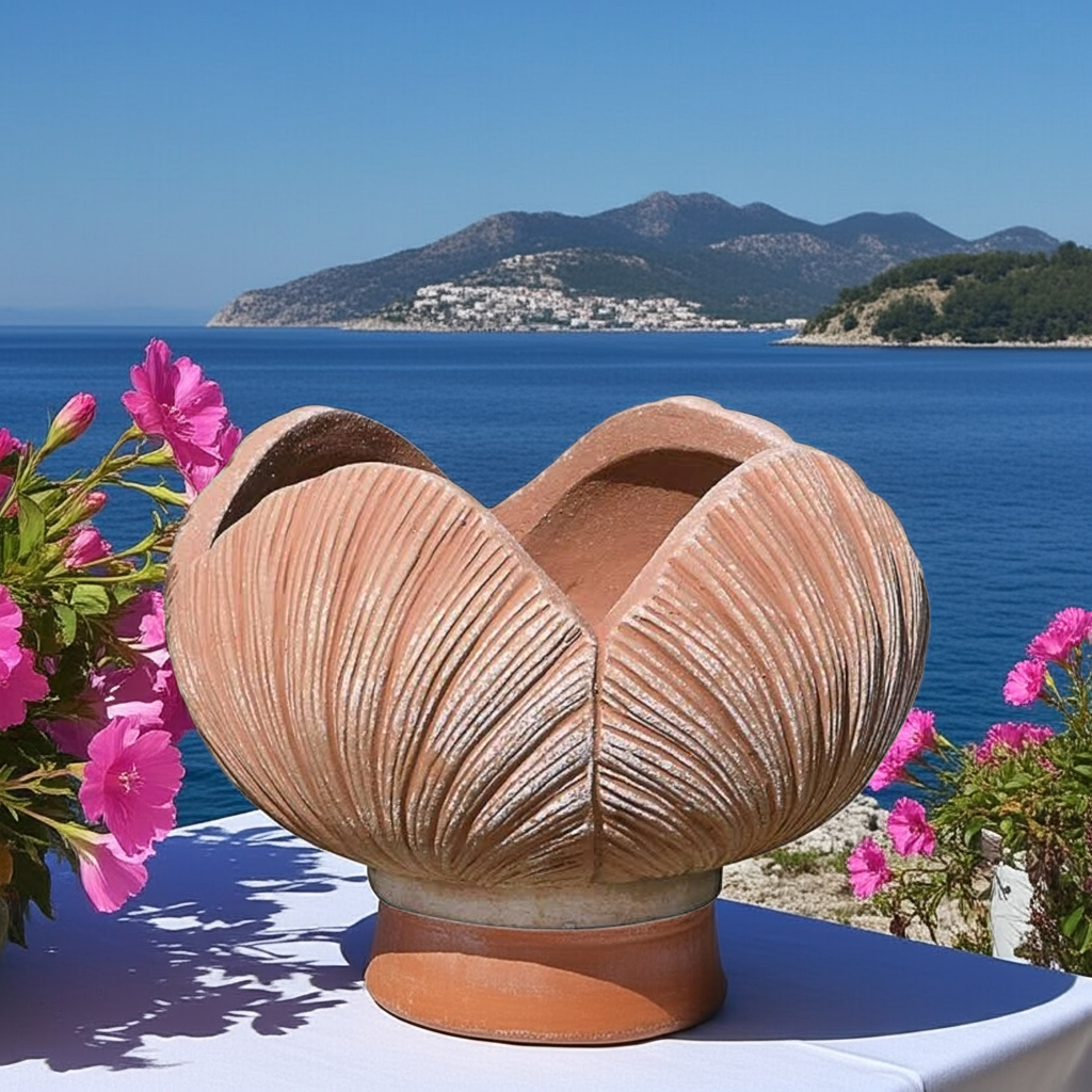 Der besondere Impruneta-Terracotta-Topf ist ein außergewöhnliches Beispiel traditioneller toskanischer Handwerkskunst. Mit seiner raffinierten Gestaltung und der harmonischen Form aus vier kunstvoll modellierten Blättern vereint er Eleganz, Natürlichkeit und künstlerische Ausdruckskraft in einem einzigartigen Design.