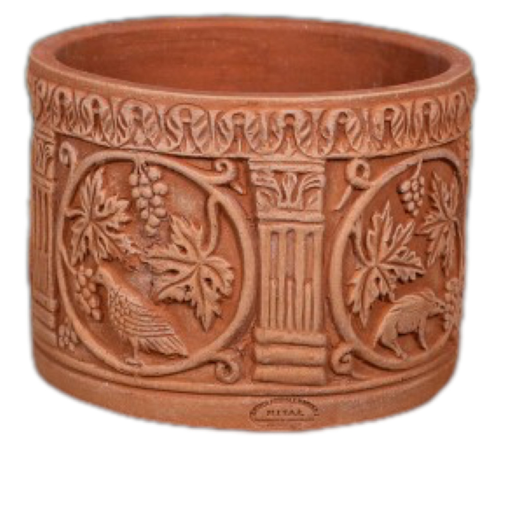 Das byzantinische Muster auf dem Topf ist von der reichen Kunst und Kultur des Byzantinischen Reiches inspiriert.