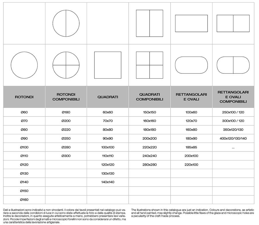 Alle Tische sind auch in eckig und oval lieferbar s. Produktbild mit möglichen Maßen.