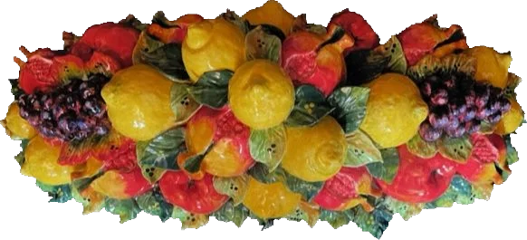 Die große, ovale mediterrane Tischdekoration, handgearbeitet in der Toskana, entfaltet sich wie ein lebendiges Stillleben und zieht mit ihrer prachtvollen Gestaltung sofort alle Blicke auf sich. Wie ein kunstvoll arrangierter Obstkorb fängt sie die Essenz des Mittelmeers ein und verleiht jeder Festtafel eine warme, einladende Atmosphäre.