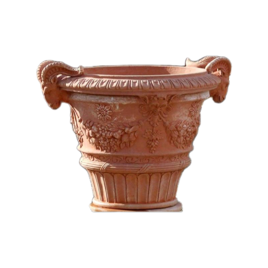 Impruneta Topf mit Widder - Vaso ornato con testa ariete