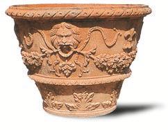 Vaso ornato Mit Ranken, Löwenköpfen und Blättern reich verzierter, runder Terracottatopf aus Impruneta. Handgemachter Terracottatopf aus Original Impruneta Erde Pflanztopf mit Innenmaßen. Durchmesser innen 60cm cm, Höhe 52cm Frostsicher bis -30°C