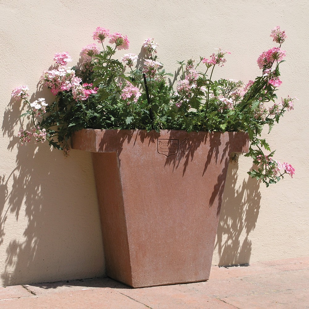 Dieser moderne Terracotta Blumentopf ist in verschiedenen Größen erhältlich.